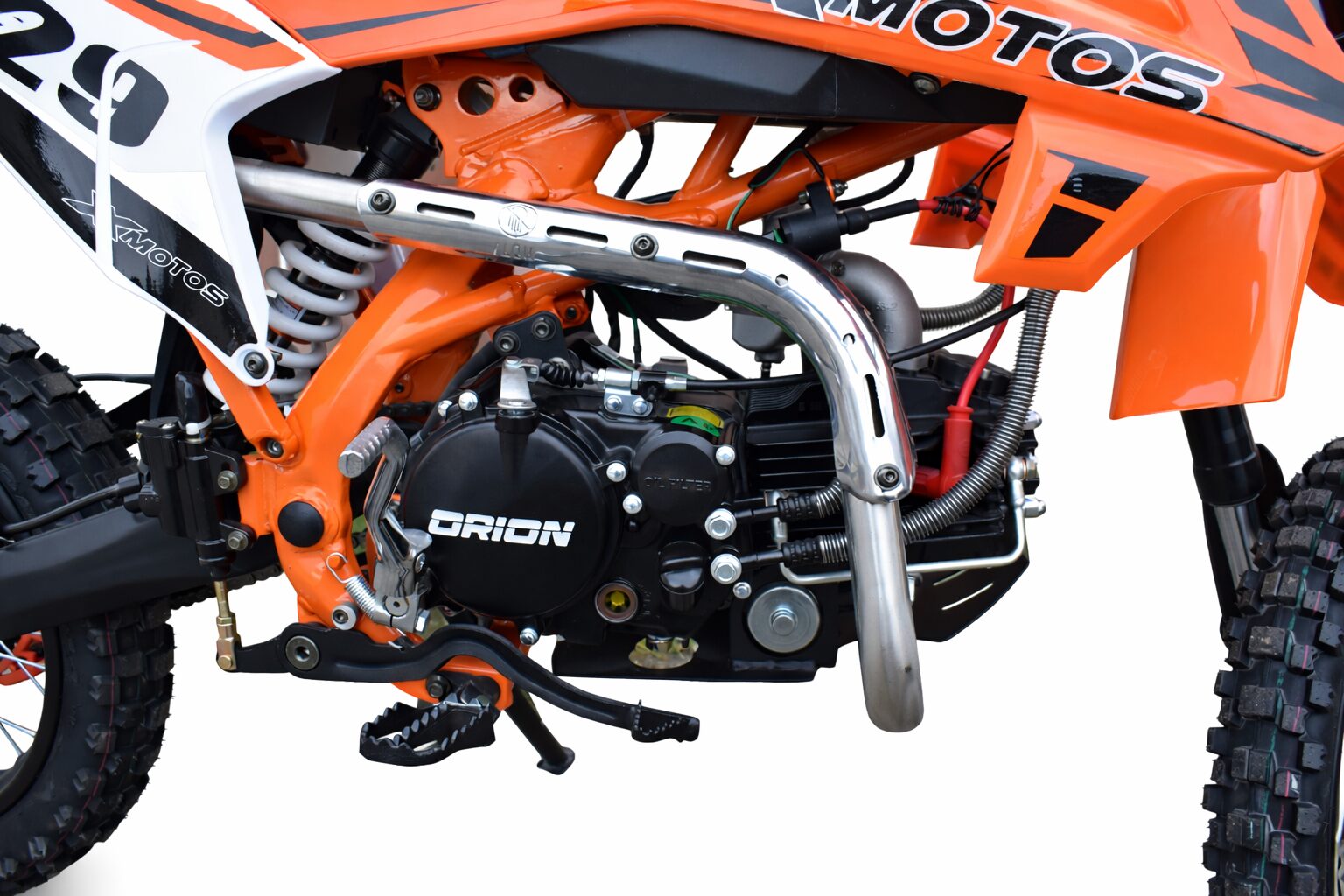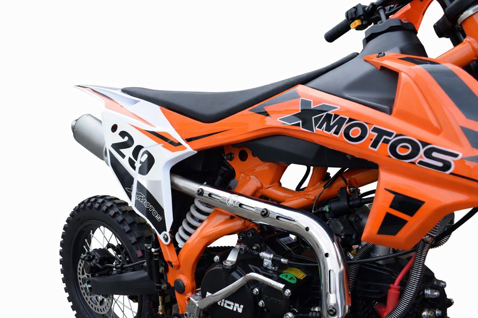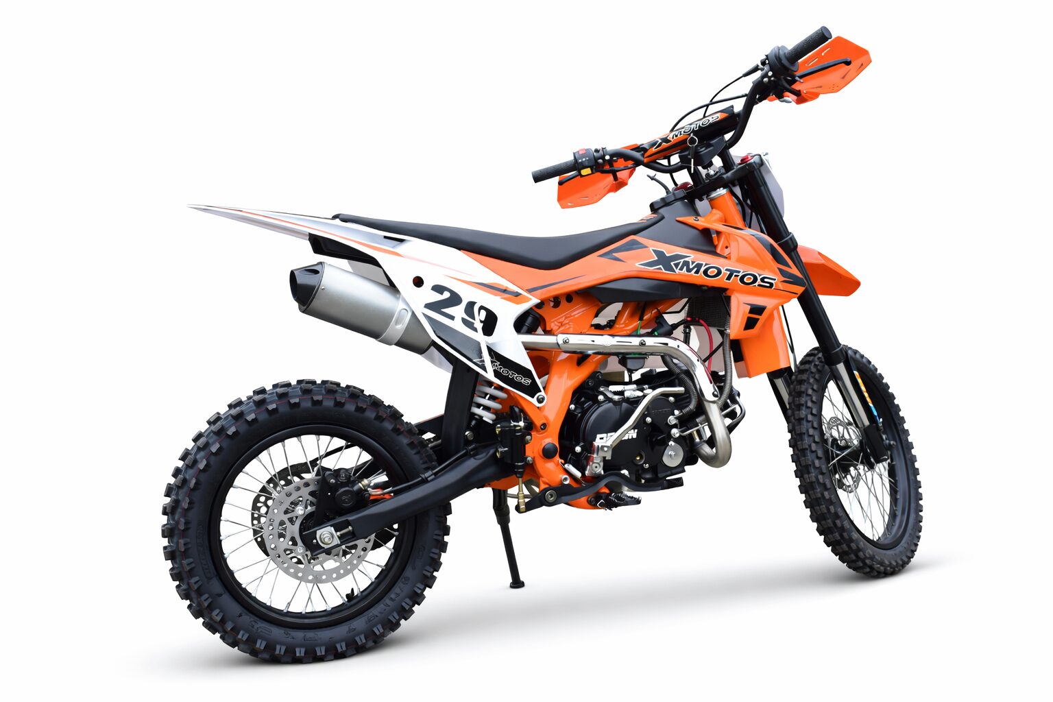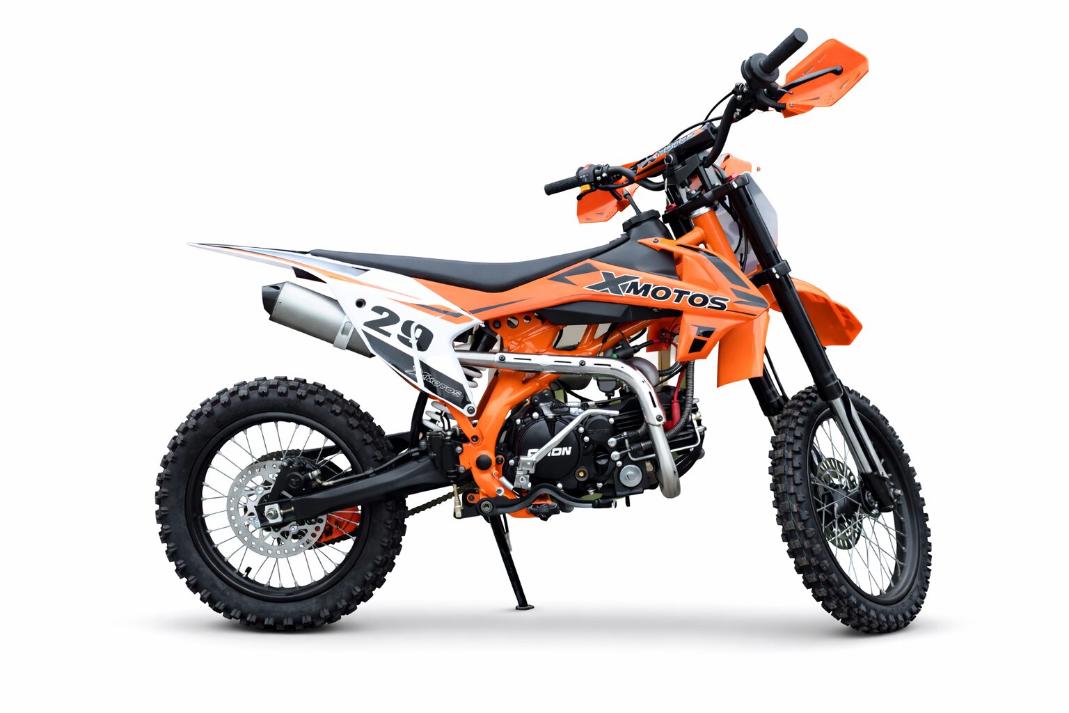 XMOTOS XB29 150cc je spoľahlivá cross/enduro motorka vybavená kvalitným motorom ORION, ktorý ponúka ideálny pomer výkonu a ovládateľnosti pre jazdu v teréne. Vďaka výkonu 12 kW, 4-taktnému jednovalcovému motoru a manuálnej 4-stupňovej prevodovke poskytuje plynulý priebeh výkonu a dostatok sily aj v náročnejších podmienkach.